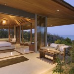 Pavilions are sited on the edge of tranquil ponds, nestled in vegetation along the shoreline, or overlooking the oceanfront and all have identical layouts. Central king-size bed, two daybeds, two vanities, freestanding bath, and a rain shower. Three shaded terraces offer twin banquettes for lounging/dining, sunken table with cushions, bolsters and two sunning mats. Amenities include: Air Conditioning, bathrobes, clock radio, DVD/CD player, entertainment unit, hair dryer, in-room safe, iron/board, mini bar, quality bath amenities, wireless internet. Standard occupancy 2 (3max).